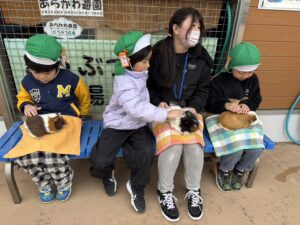 モルモットやうさぎを優しくなでたり、モルモットをお膝に乗せたりしながら、「かわいい〜😍」と笑顔いっぱいの子どもたち。癒されるひとときとなりました💚