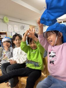 進級式では、新しい帽子をかぶり「見て〜!」と嬉しそうな子どもたち👒💕