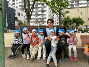 ひとしきり遊んだあとは3歳児さんを迎えに保育園に戻り